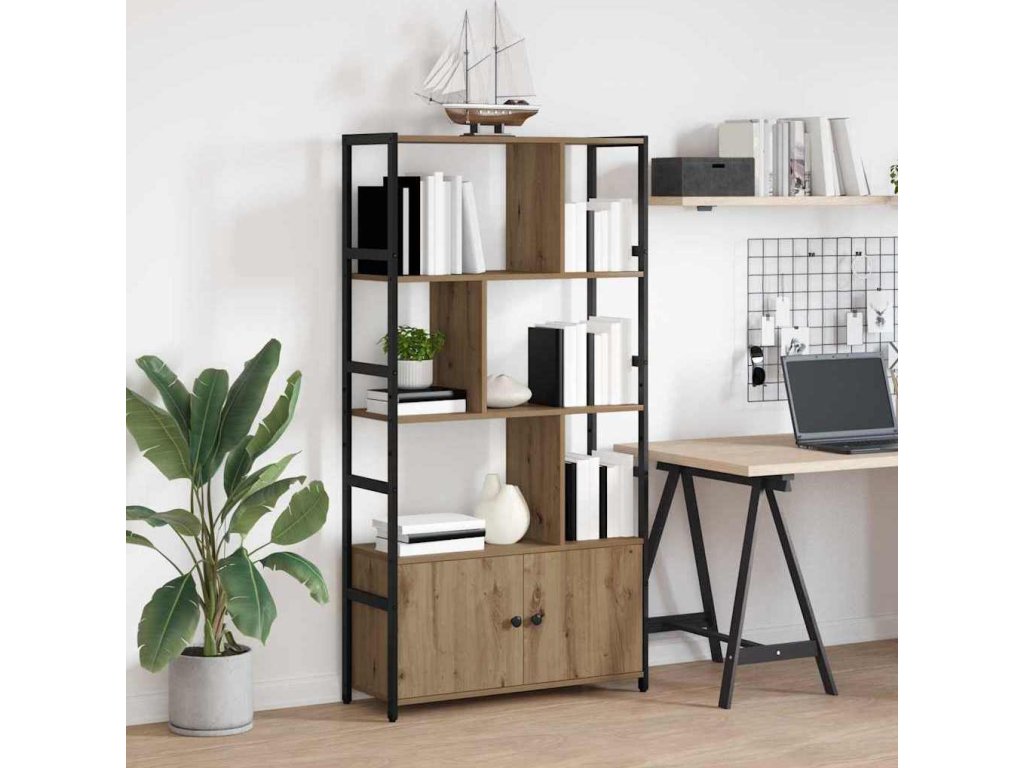Tahle samostatně stojící knihovna s vícero úrovněmi je perfektní doplněk do jakéhokoli moderního bydlení nebo kanceláře. Její jednoduché linie a funkční design nabízejí dostatek úložného prostoru, zatímco se snadno vejde do různých dekorací. Kombinace inženýrského dřeva a silného ocelového rámu jí dodává šmrnc a umožňuje ukládat knihy, dekorace a další věci, aniž by ztratila na atraktivitě.