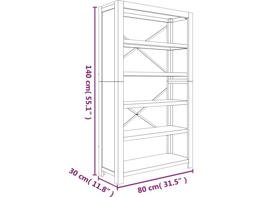 Knihovna s 5 policemi 80 x 30 x 140 cm masivní akáciové dřevo [345084]