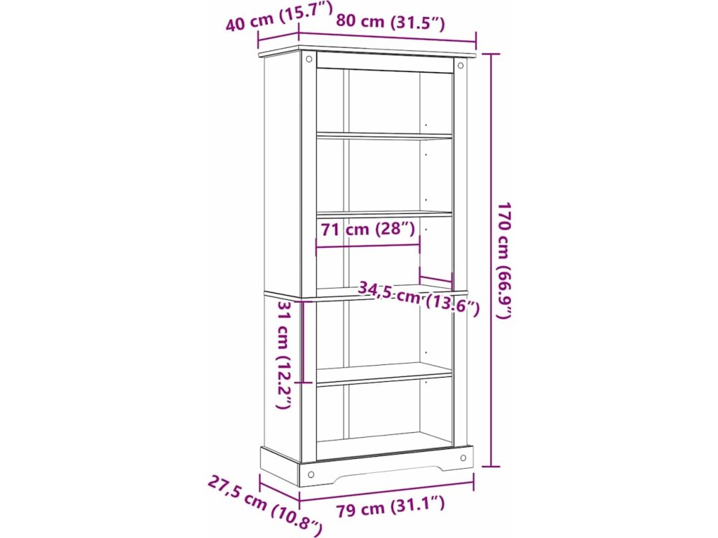 Knihovna s 5 policemi mexická borovice Corona 80x40x170 cm [243744]