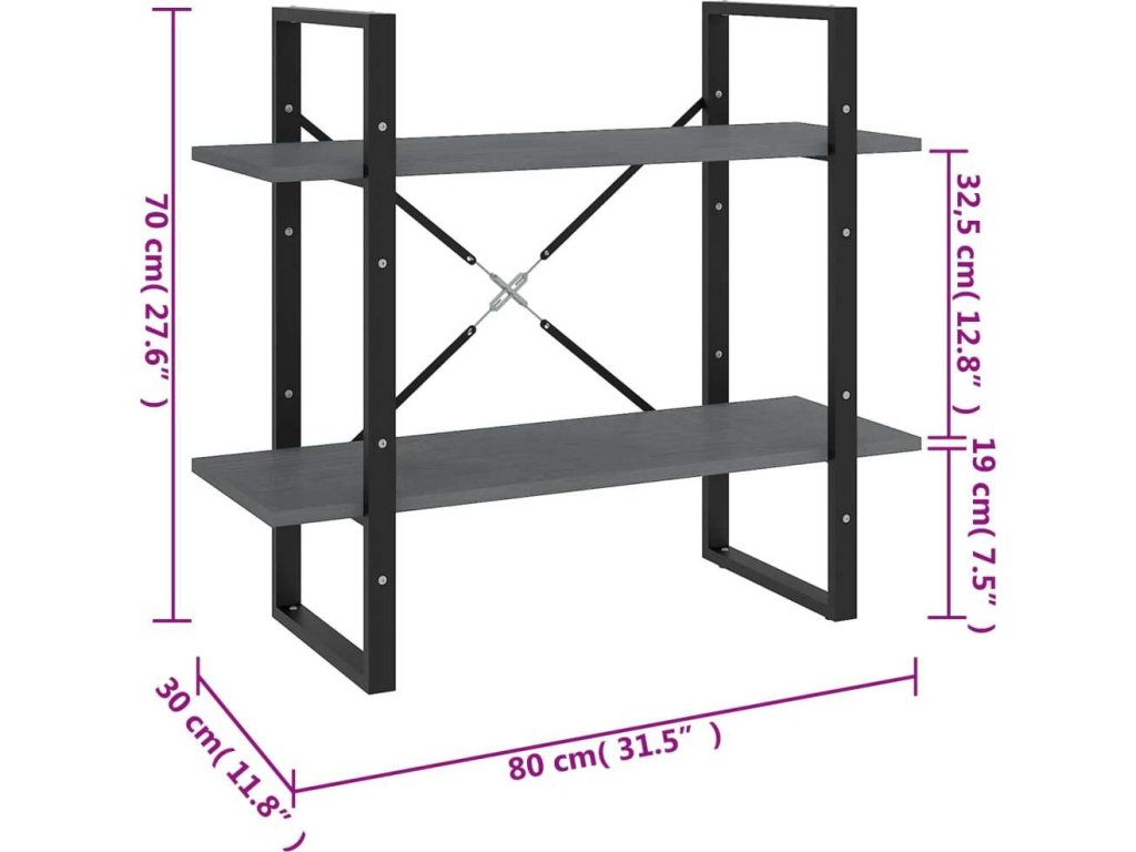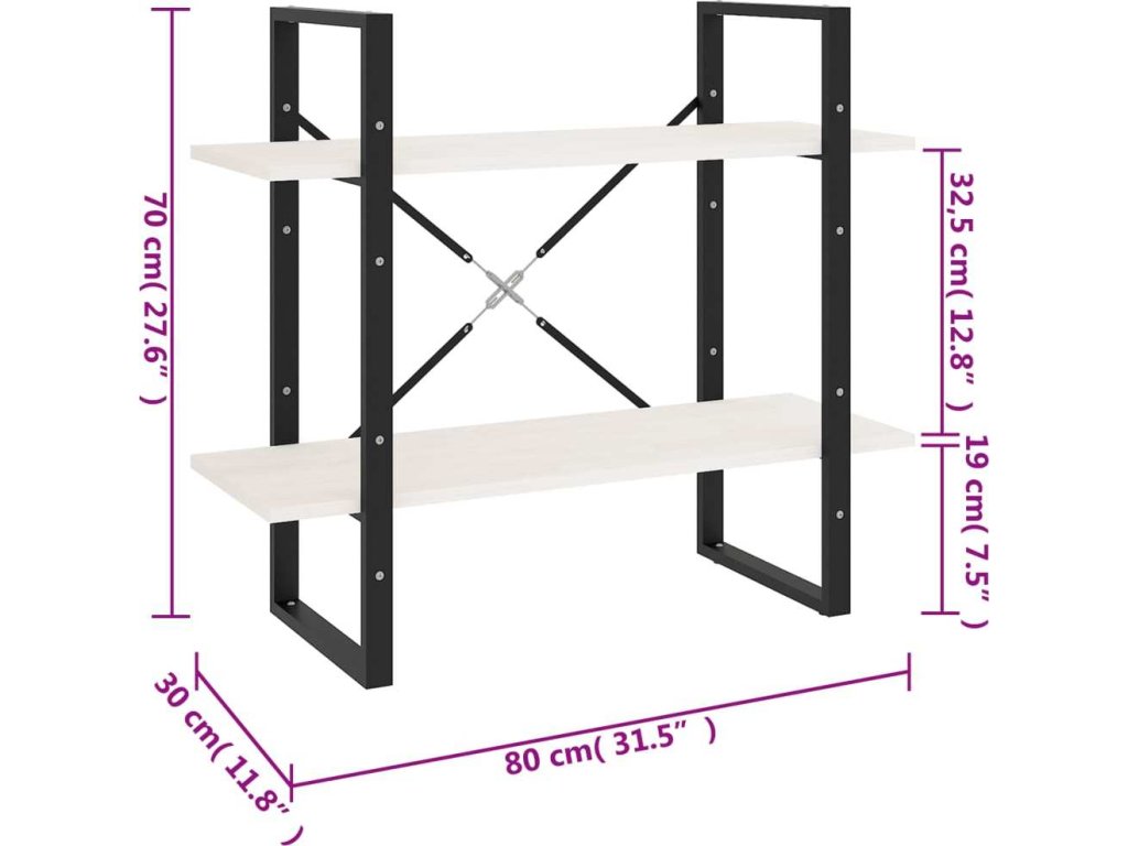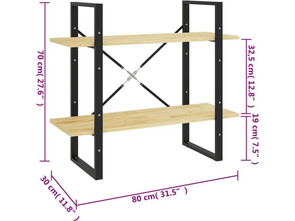 Knihovna se 2 policemi 80 x 30 x 70 cm masivní borovice [806456]