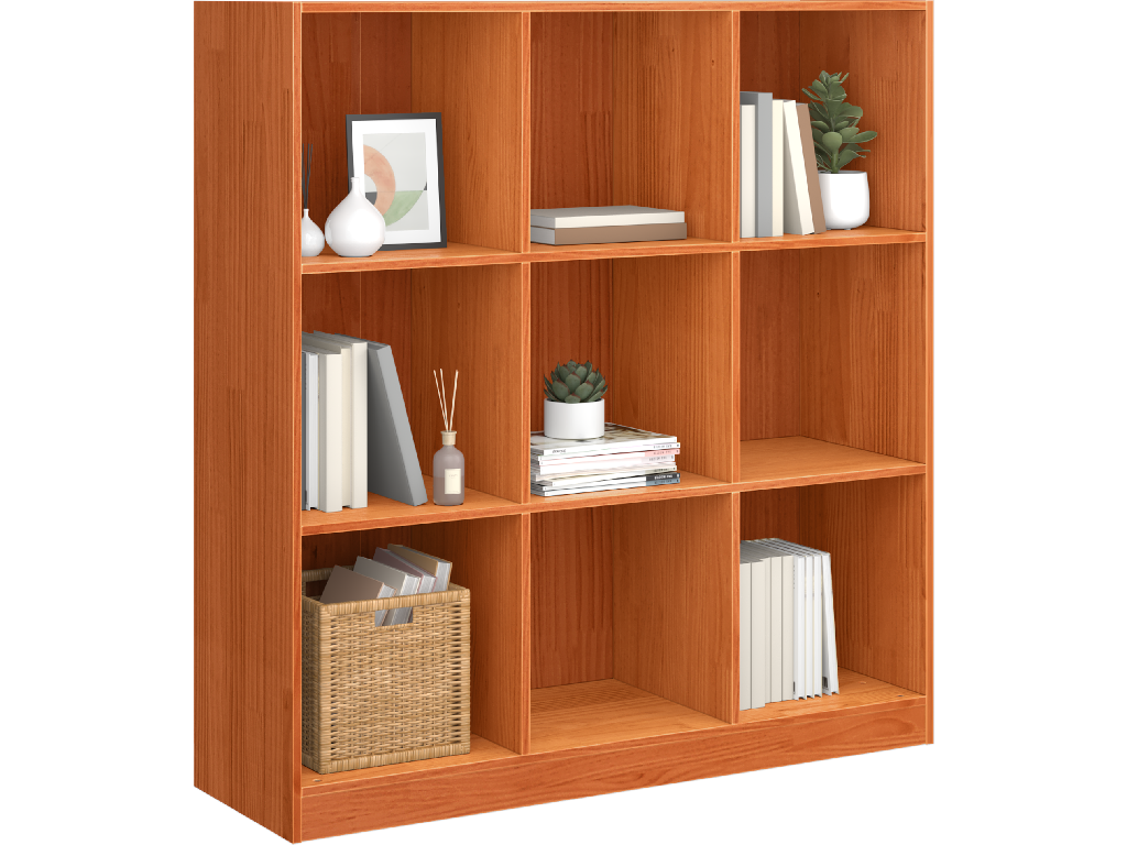 - Materiály: Knihovnička je vyrobená z masivního borového dřeva, známého svou odolností a krásnou texturou. Tenhle materiál zajišťuje spolehlivost a dodává eleganci vašemu prostoru, takže se hodí do různých interiérových stylů.