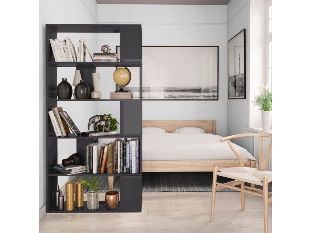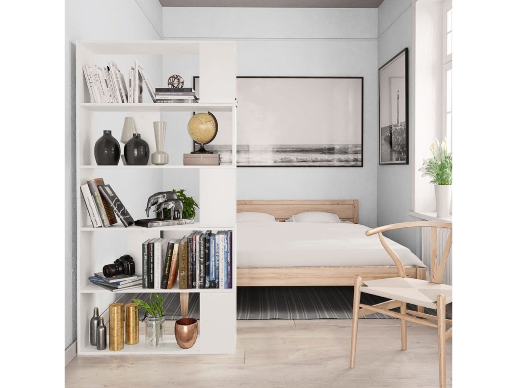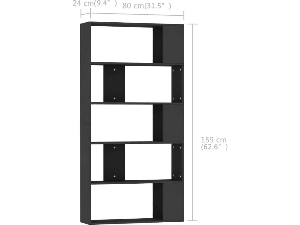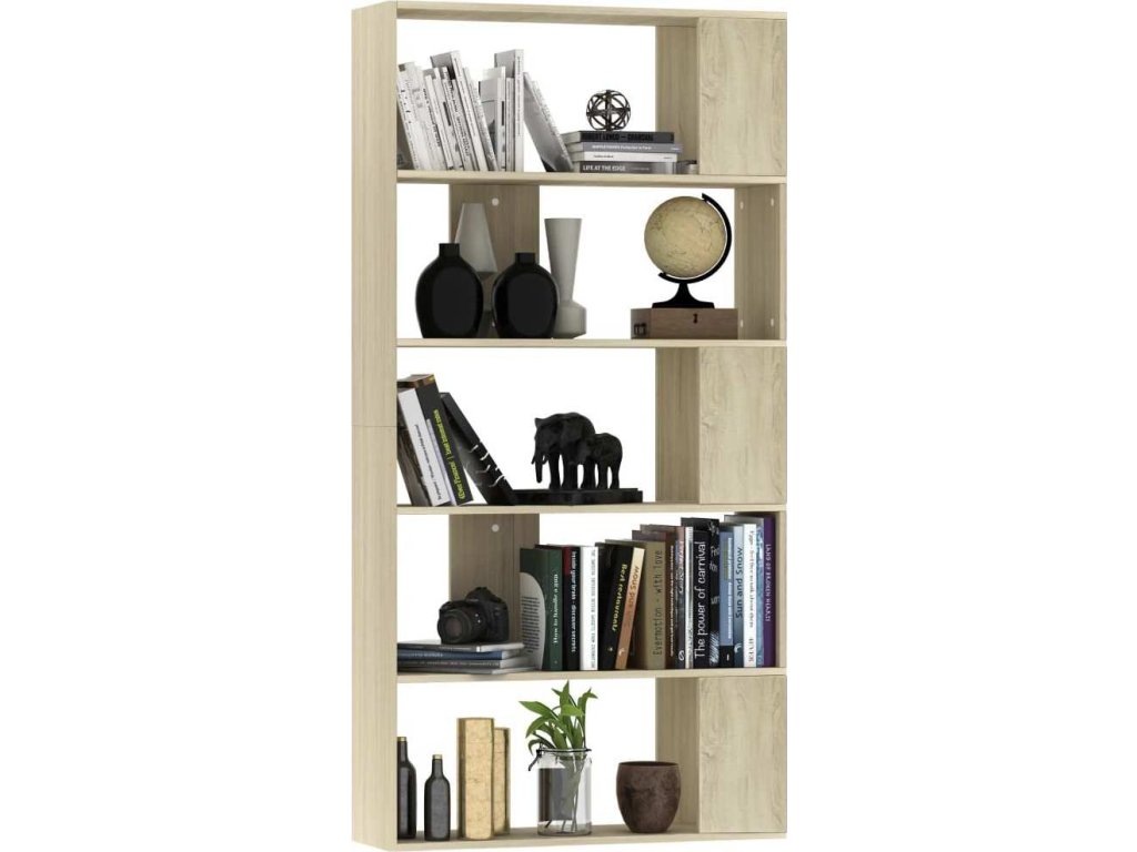 Knihovna je vyrobená z kvalitní desky, je tudíž robustní, odolná a má dlouhou životnost. Pět velkých přihrádek vám poskytne spoustu místa pro přehledné ukládání časopisů, knih, DVD a multimediálních zařízení, které chcete mít po ruce, stejně jako i pro vystavení různých dekorativních předmětů. Tyto police na knihy s všestranným charakterem lze rovněž využít k rozdělení místnosti, například předsíně, chodby nebo jiného pokoje ve vašem domě.