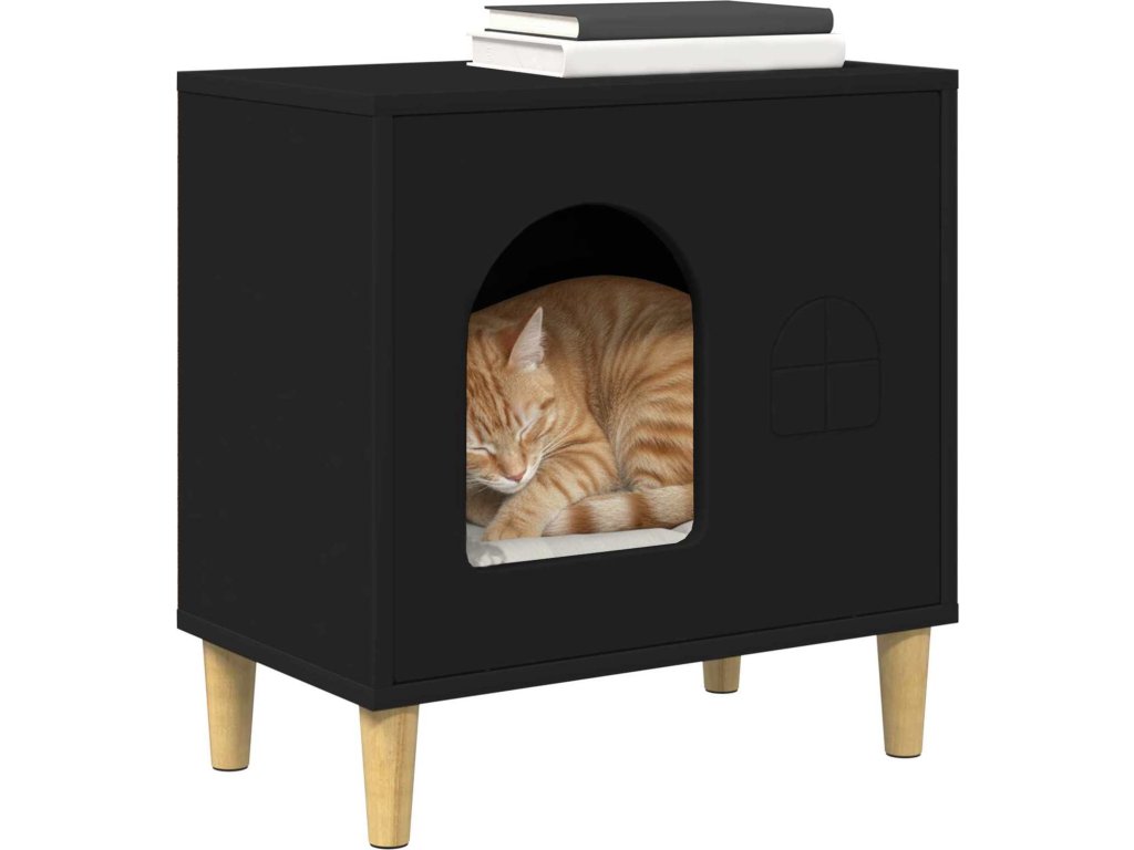 Kočičí dům Černá 51 x 30 x 52 cm kompozitní dřevo [8000663]