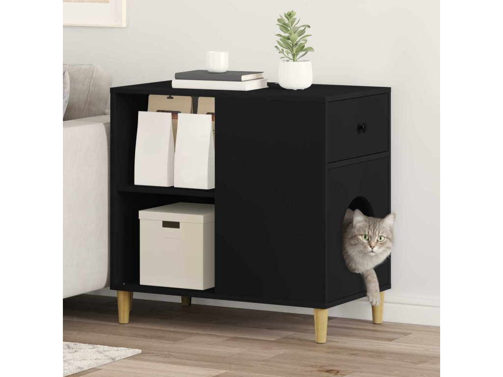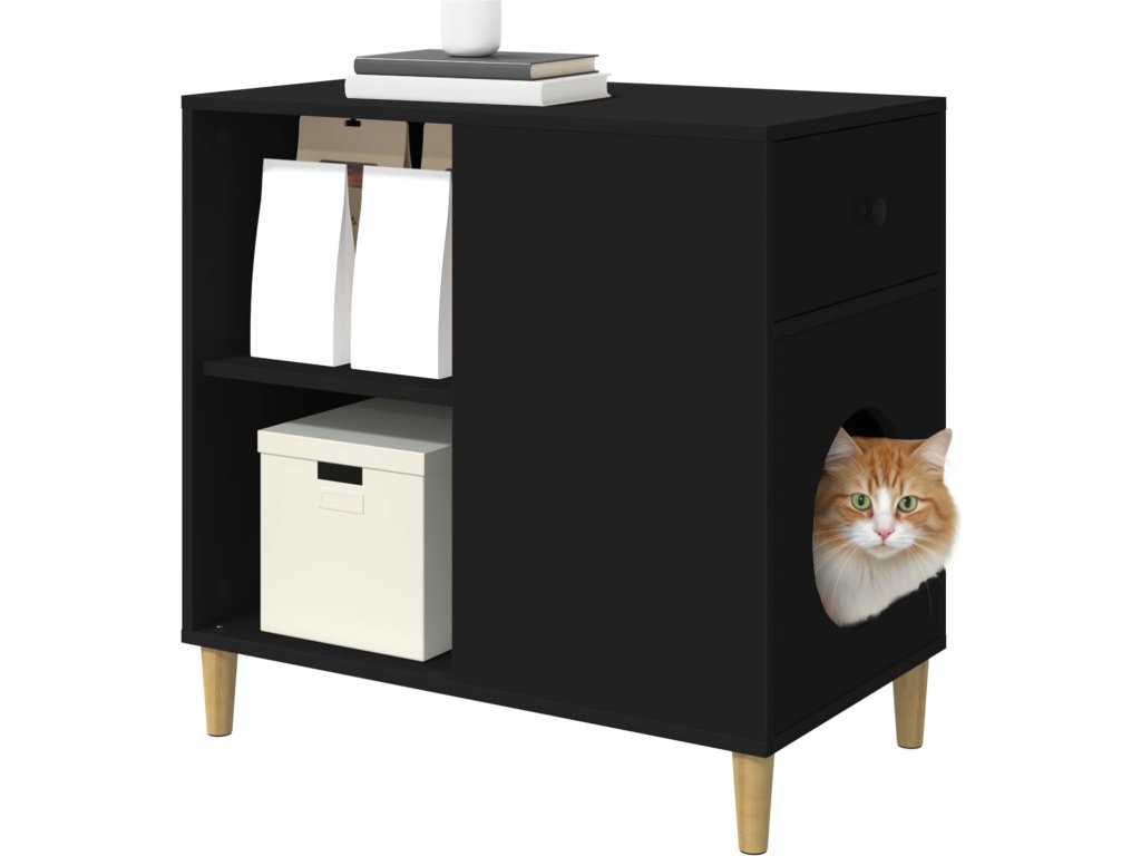 Kočičí dům Černá 72 x 42.5 x 70 cm kompozitní dřevo [8000681]