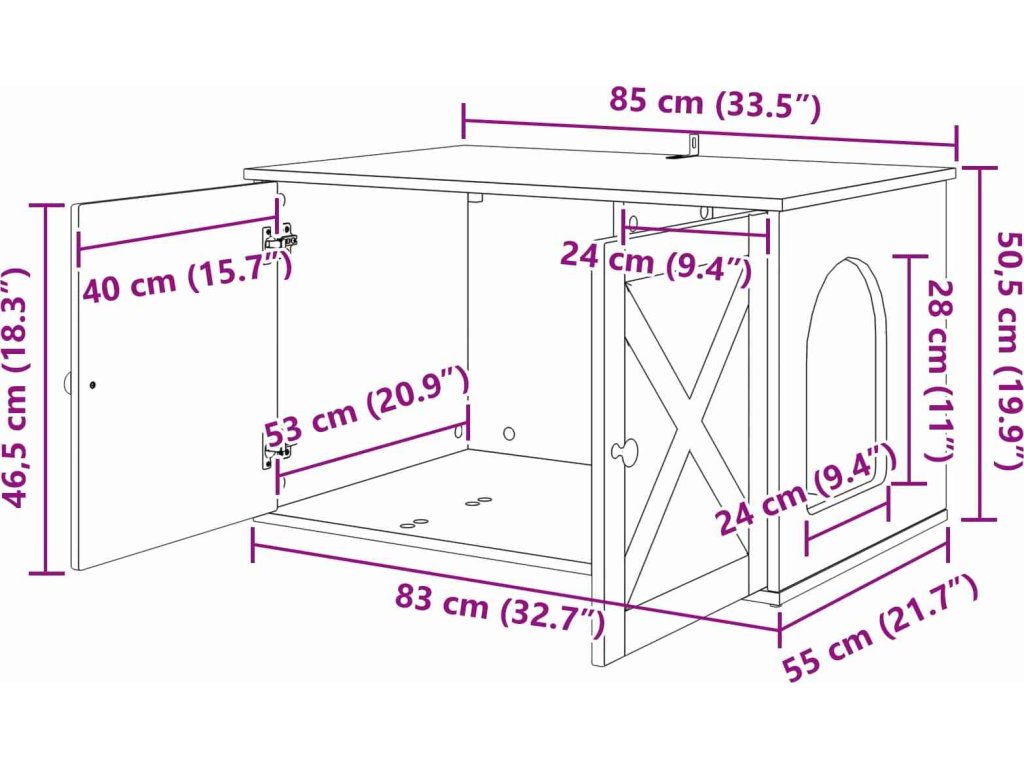 - Celkové rozměry: 85 x 55 x 50,5 cm (D x Š x V)