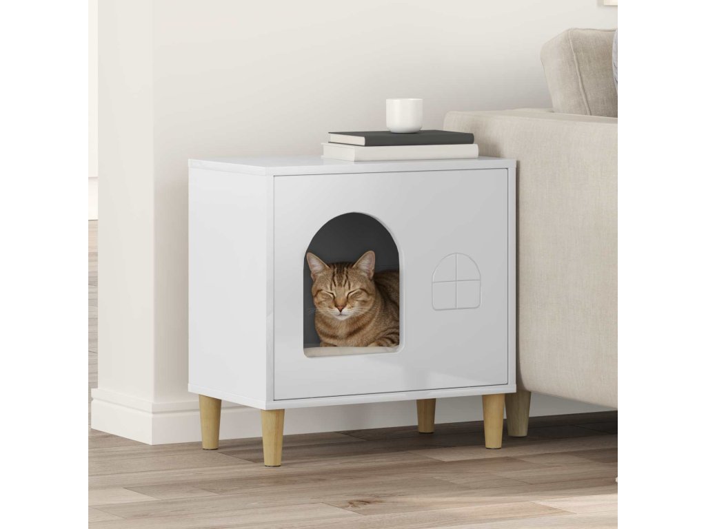 Kočičí dům Lesklá Bílá 51 x 30 x 52 cm kompozitní dřevo [8000666]
