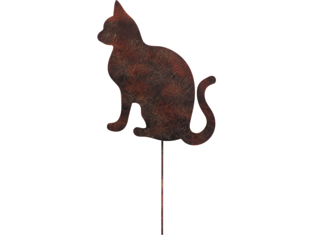 Tento zahradní kovový zápich v podobě kočičí siluety v měděné až narezavělé barvě je skvělým prostředkem, jak oživit a ozdobit váš venkovní prostor. Můžete jej snadno umístit na záhony, nechat vyniknout ve volném prostoru, případně okolo květin, či keřů. Zabere málo místa, a přitom bude výrazným bodem, který jen stěží někdo přehlédne. Kovová konstrukce zajišťuje trvanlivost a odolnost vůči povětrnostním vlivům, což znamená, že tuto dekoraci můžete nechat venku prakticky po celý rok. Tento zápich přidává do vaší zahrady nejen zajímavý estetický prvek, ale také charakter, a stane se výrazným bodem vaší celkové kompozice.