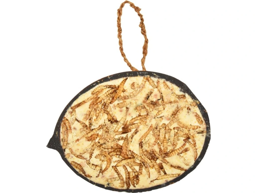 - Materiál: rozinky, arašídy, slunečnice, kroupy, červi, jedlý tuk a zrna