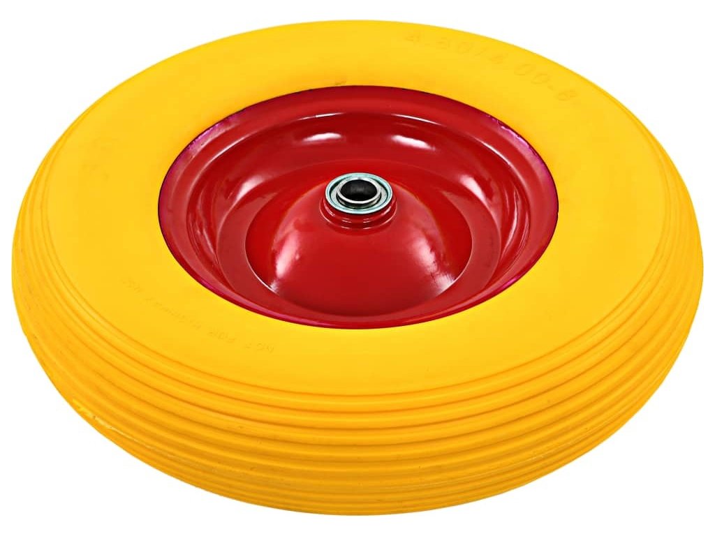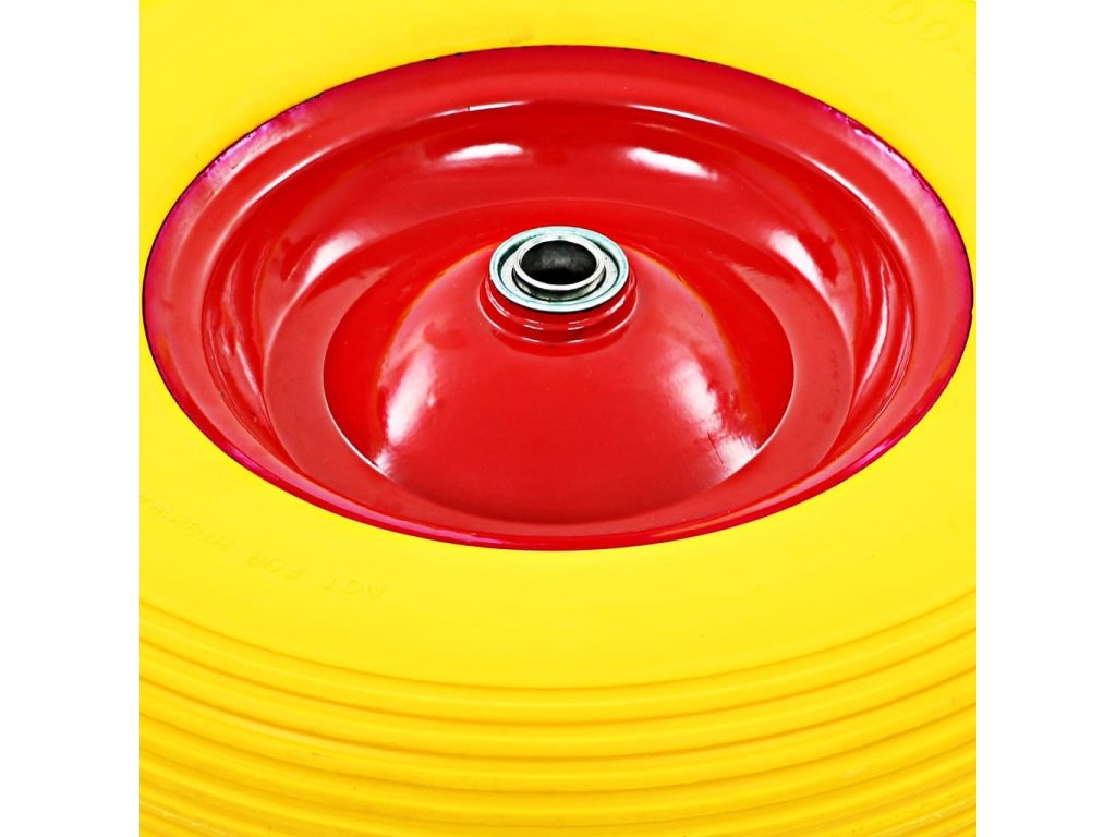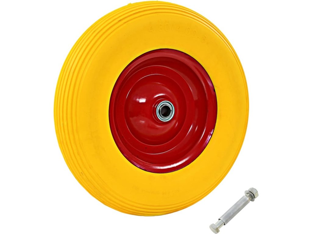 Tato solidní pneumatika je vyrobena z odolného, otěruvzdorného PU elastomeru a má speciálně designovaný vzorek, který zvyšuje přilnavost k povrchu při vyšších rychlostech. Ráfek kola je vyroben z robustního kovu. Náhradní kolečko má univerzální velikost a lze ho snadno instalovat do stavebního kolečka, vozíků na pytle, ručních vozíků atd.