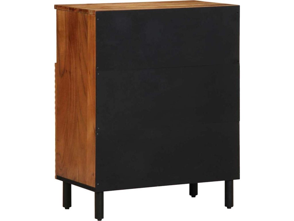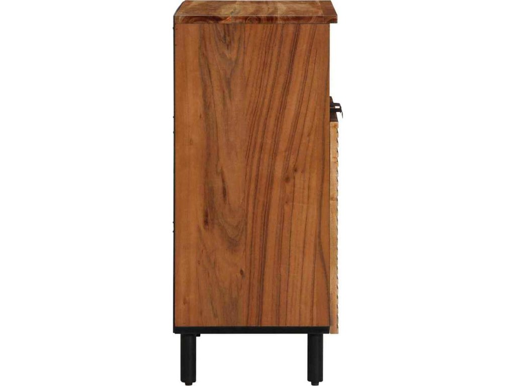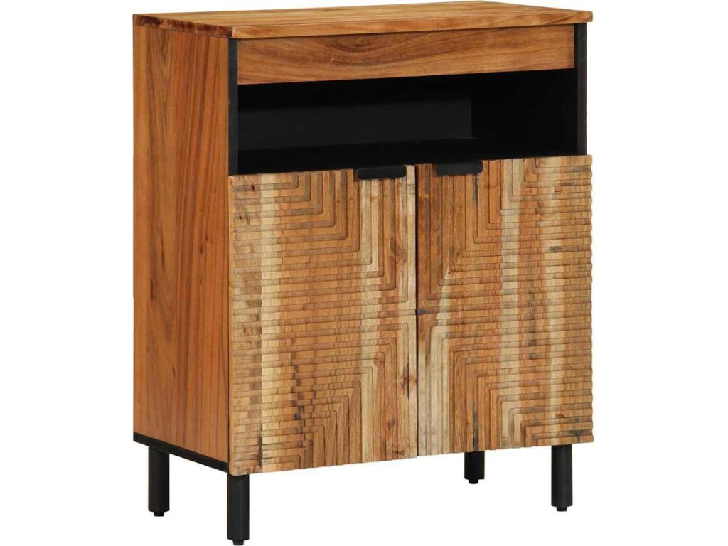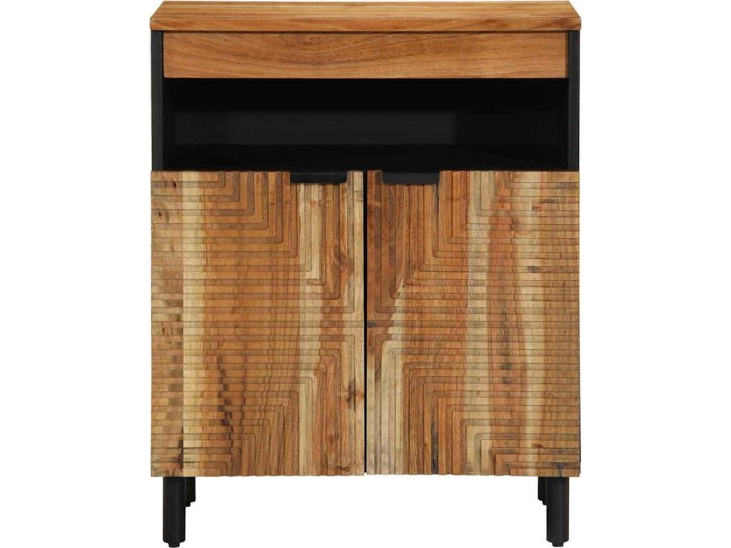 Tahle moderní dřevěná skříňka je krásně zpracované úložné řešení, ideální pro jídelny nebo obýváky. Její rustikální design působí přirozeně a robustně, takže se skvěle hodí pro ty, kdo mají rádi přírodní styl. Díky kompaktním rozměrům 60 x 33,5 x 75 cm spojuje funkčnost se stylem.