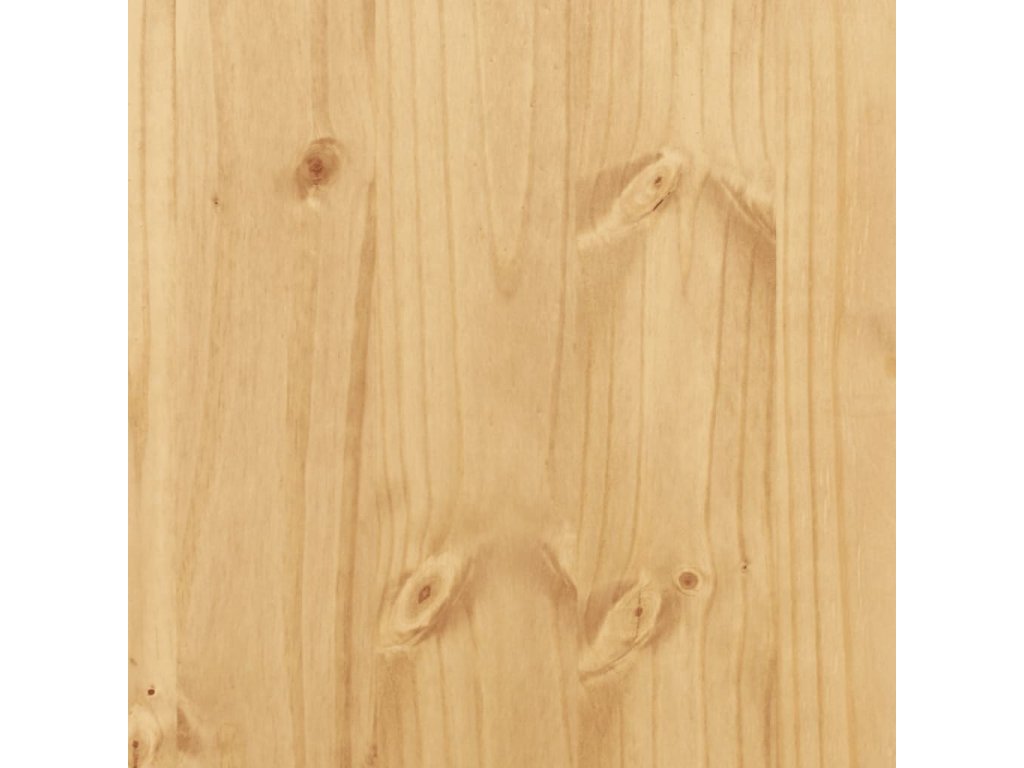 - Masivní borové dřevo: Masivní borové dřevo je krásný přírodní materiál. Borové dřevo má rovnou kresbu a obsahuje suky, které materiálu dodávají jeho charakteristický, rustikální vzhled. Komoda je vyrobena z masivního borového dřeva a je odolná a robustní.