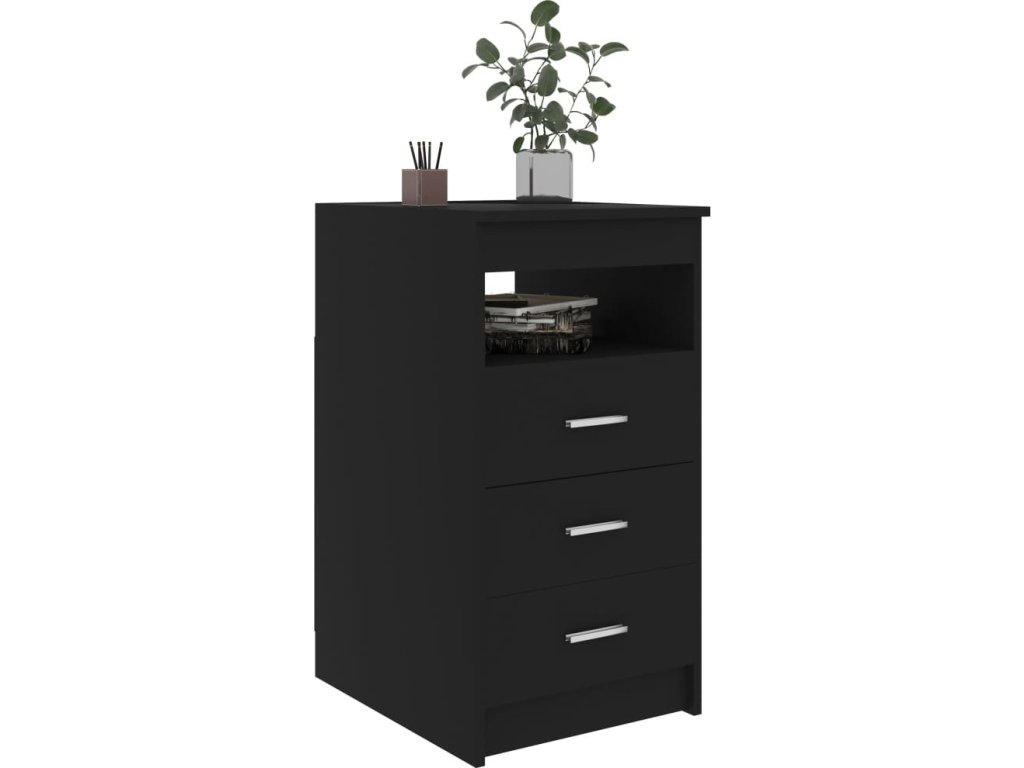 Tato skříňka je vyrobená z kvalitního kompozitního dřeva, které je robustní a má dlouhou životnost. Má 3 zásuvky, do kterých si můžete uložit a zorganizovat své dokumenty, složky a další kancelářské potřeby. Horní deska a otevřená horní polička vám poslouží k vystavení zarámovaných fotografií, knih či jiných předmětů. Navíc tento produkt můžete použít samostatně nebo v kombinaci s vaším stávajícím psacím stolem jako dodatečný úložný prostor.
