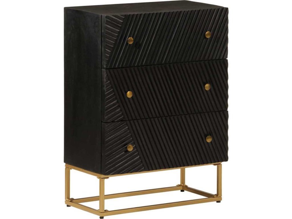 Komoda se zásuvkami černá 55x30x76cm masivní mangovník a železo [372025]