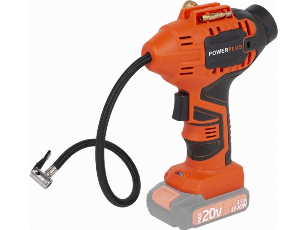 - Kompresor PowerPlus POWD7020 patří do rodiny Dual Power – lze použít 20V i 40V baterii
