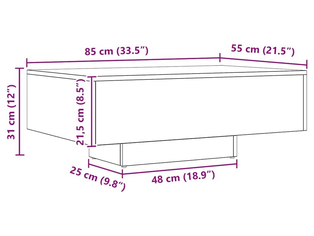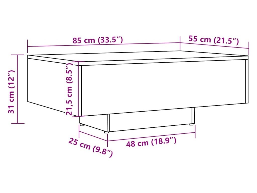 - Materiál s dlouhou životností: Stolek k pohovce je vyroben z kompozitního dřeva, což zajišťuje jeho pevnost, odolnost a dlouhou životnost.
