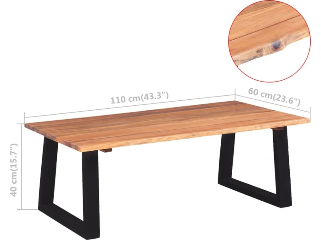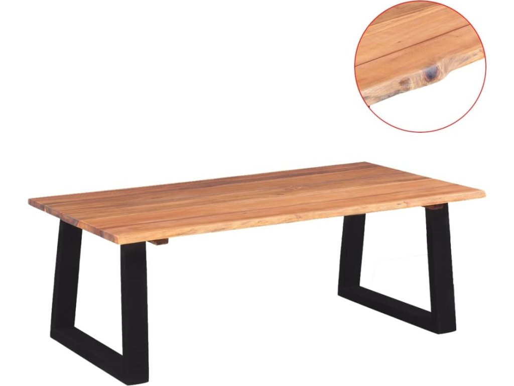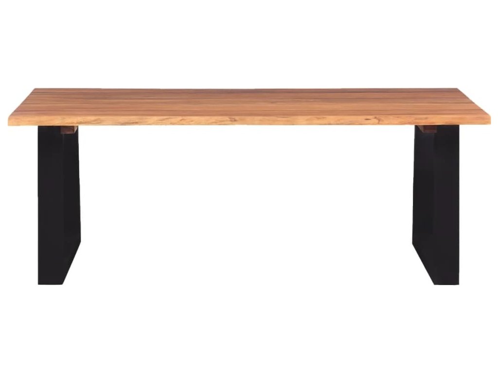 Stolní deska je vyrobena z pevného, masivního akáciového dřeva. Jeho jedinečné kovové nohy ve tvaru písmene U dodávají stolku industriální styl a stůl je velmi stabilní. Nepravidelné hrany dřeva, která sleduje přirozený tvar stromu, zvyšuje krásu stolu.