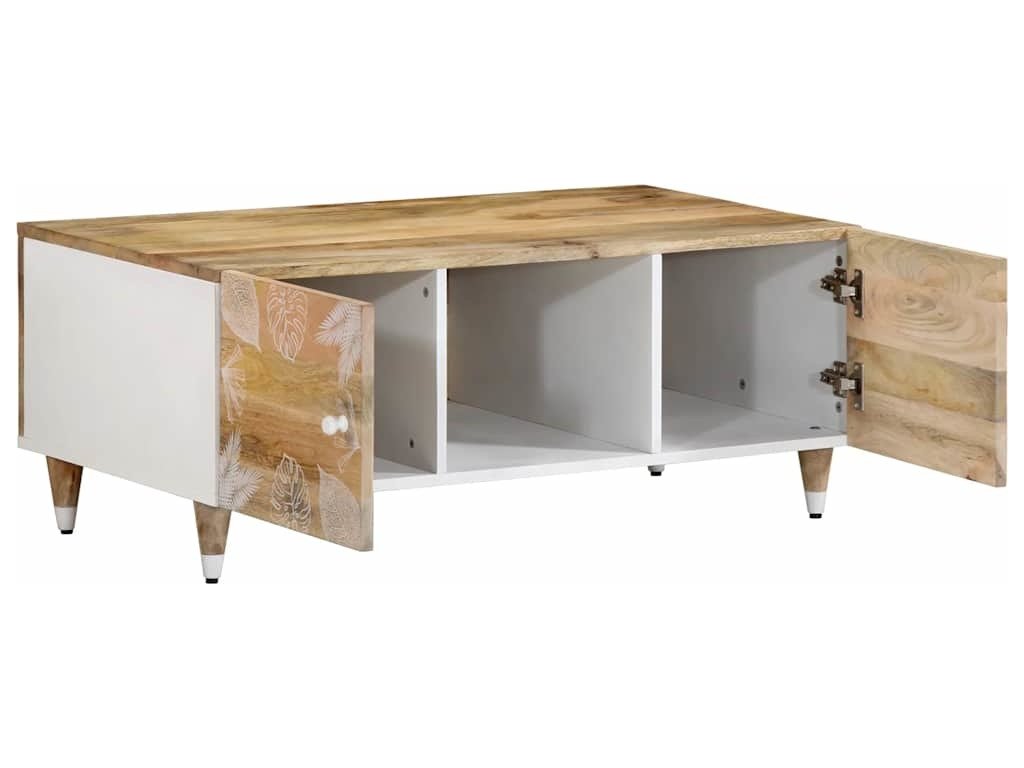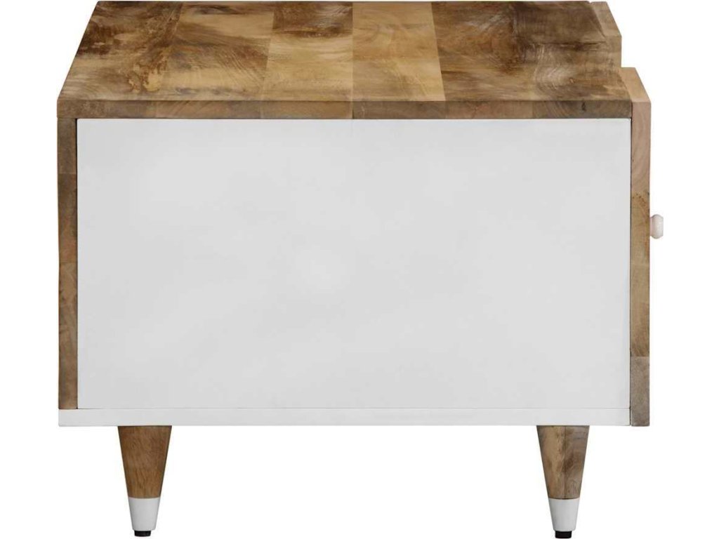 - Materiál: Přírodní mango s bílým lakem, kompozitní dřevo, kov