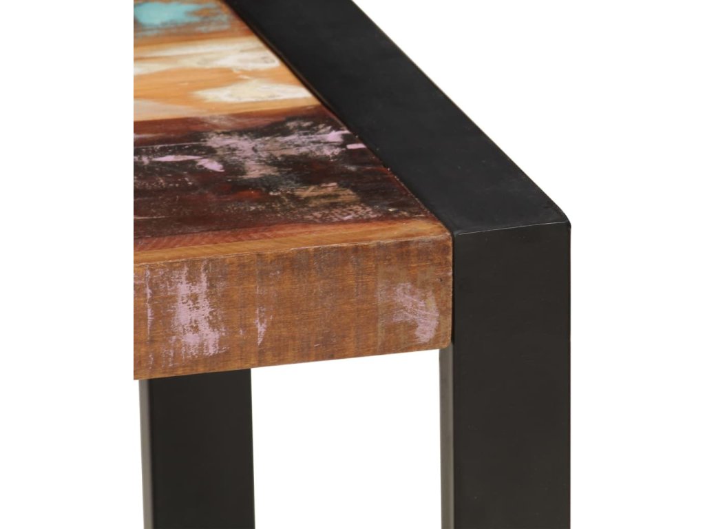 Přístavný stolek je vyrobený z masivního recyklovaného dřeva, které je stabilní a odolné. Recyklované dřevo má vlastnosti různých druhů dřeva, jako je teak, mangovník, akácie atd. Takové dřevo má již svůj věk, je zvětralé a vysušené, takže se nesmršťuje a neohýbá. Každý krok výrobního procesu, ať už je to leštění, barvení nebo lakování, je prováděn s největší péčí. Silné ocelové nohy s práškovým nástřikem zvyšují stabilitu stolku. Odkládací stolek snadno smontujete.