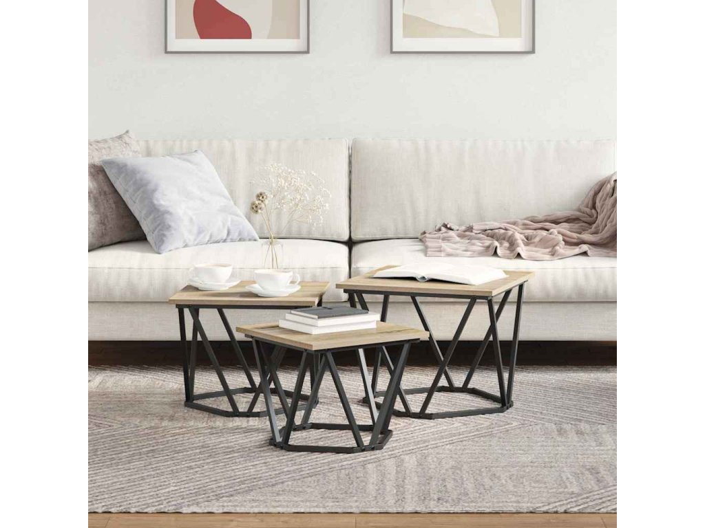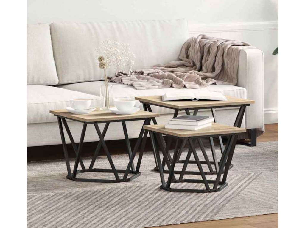 Konferenční stolek 3 pcs Sonoma dub Inženýrské dřevo a ocel [868280]