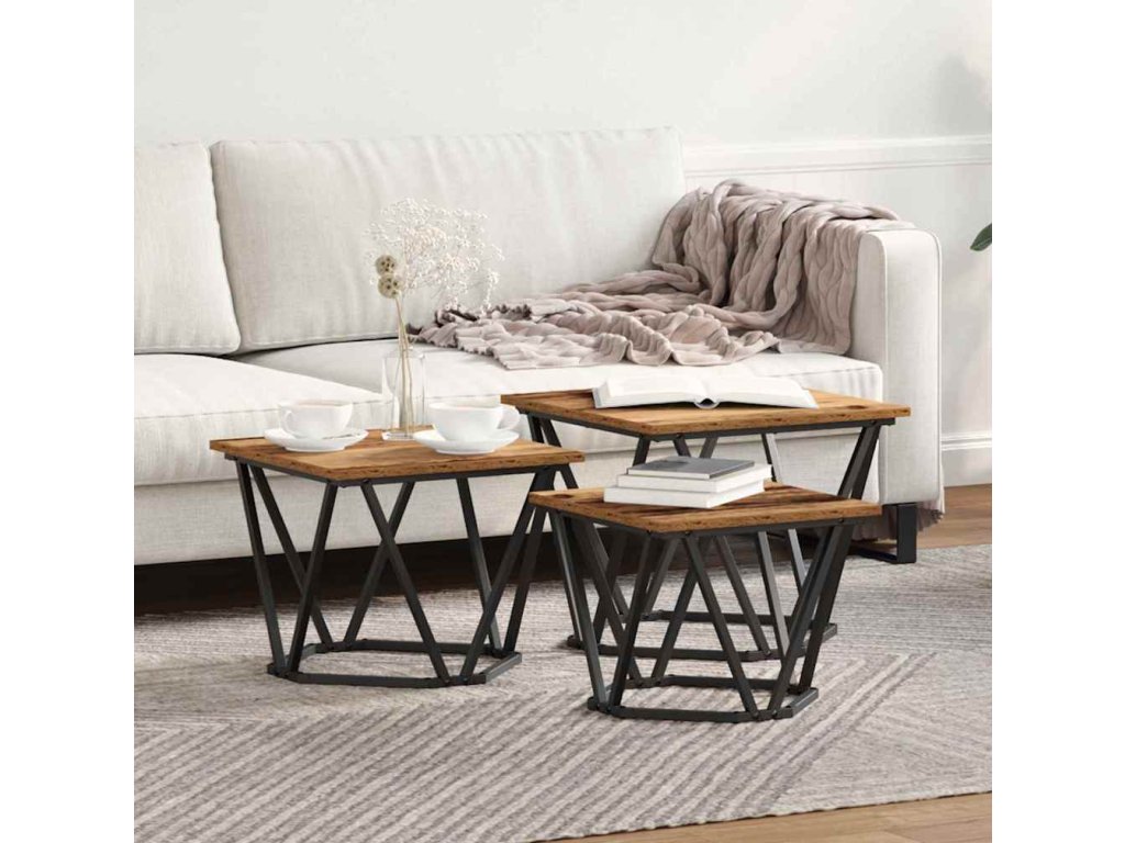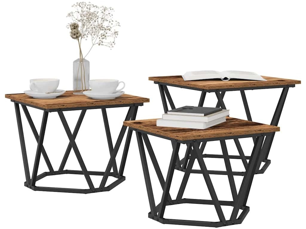 Konferenční stolek 3 pcs Staré dřevo Inženýrské dřevo a ocel [868283]
