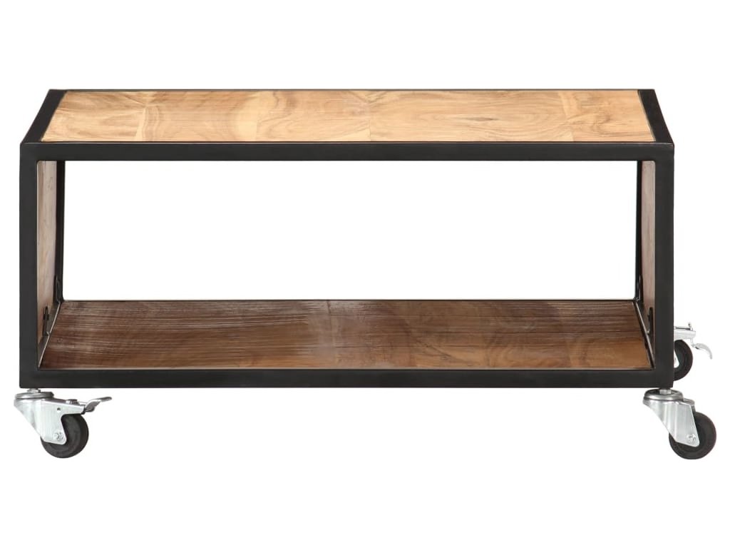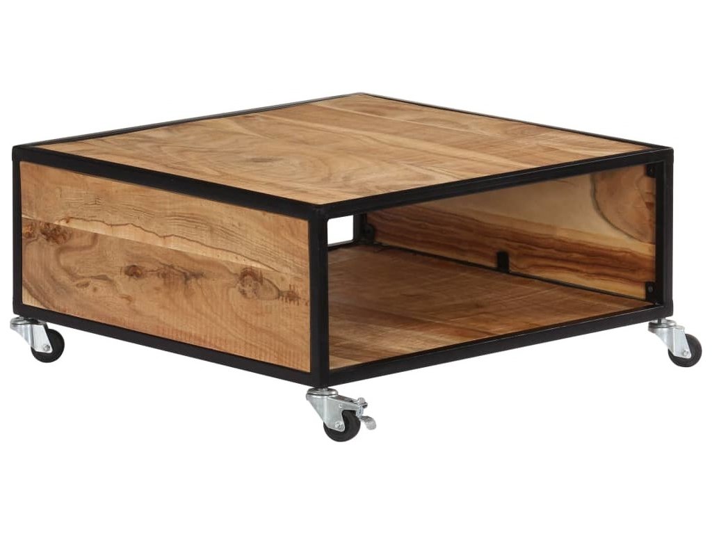 Stolek ke gauči je vyrobený z masivního akáciového dřeva, které leštěním a nalakováním získalo nádherný povrch, čemuž vděčí za svůj rafinovaný vzhled. Vzhledem k řemeslnému zpracování a elegantní struktuře dřeva je každý kus nábytku jedinečný a mírně odlišný od ostatních. Tento odkládací stolek má 1 přihrádku a poskytuje velkorysý prostor pro uložení vašich multimediálních zařízení, knih a různých dalších předmětů. Dřevěný konferenční stolek je vybaven 4 kolečky a snadno se přemisťuje.