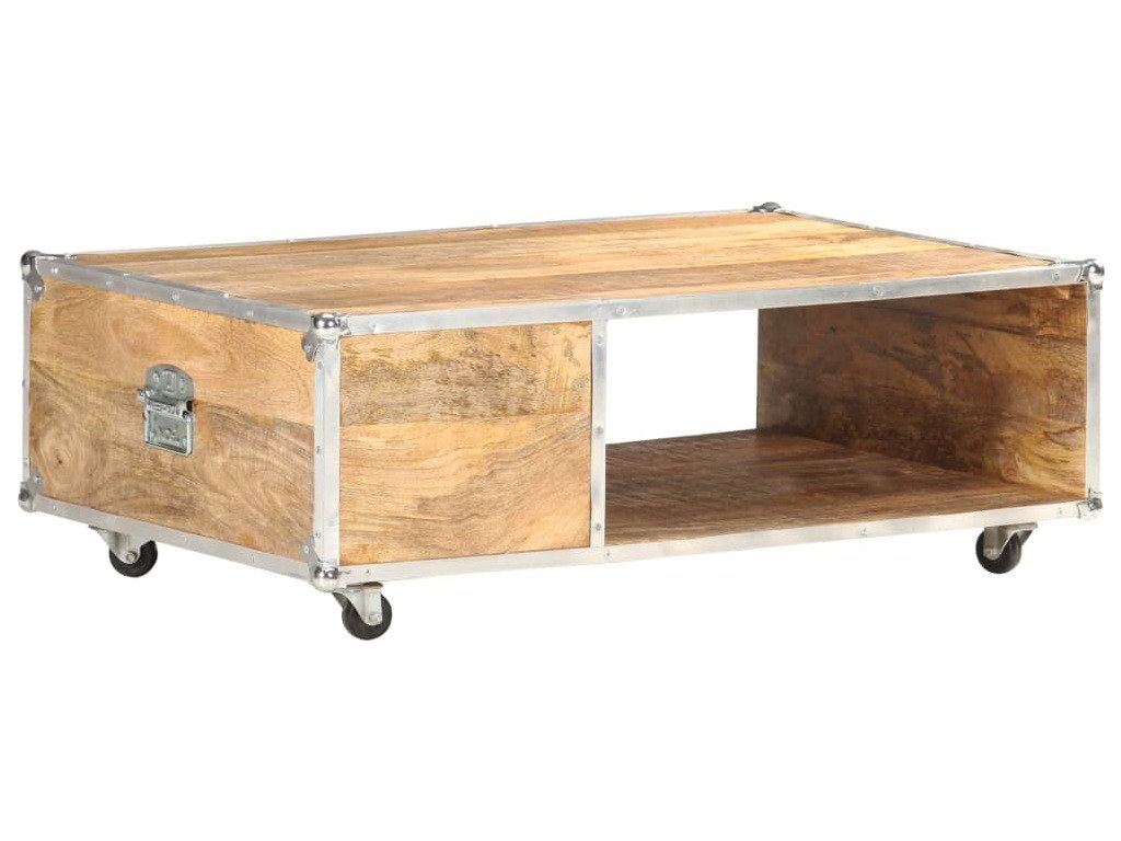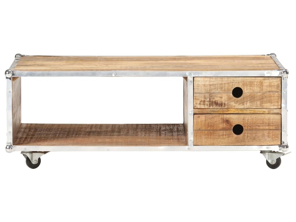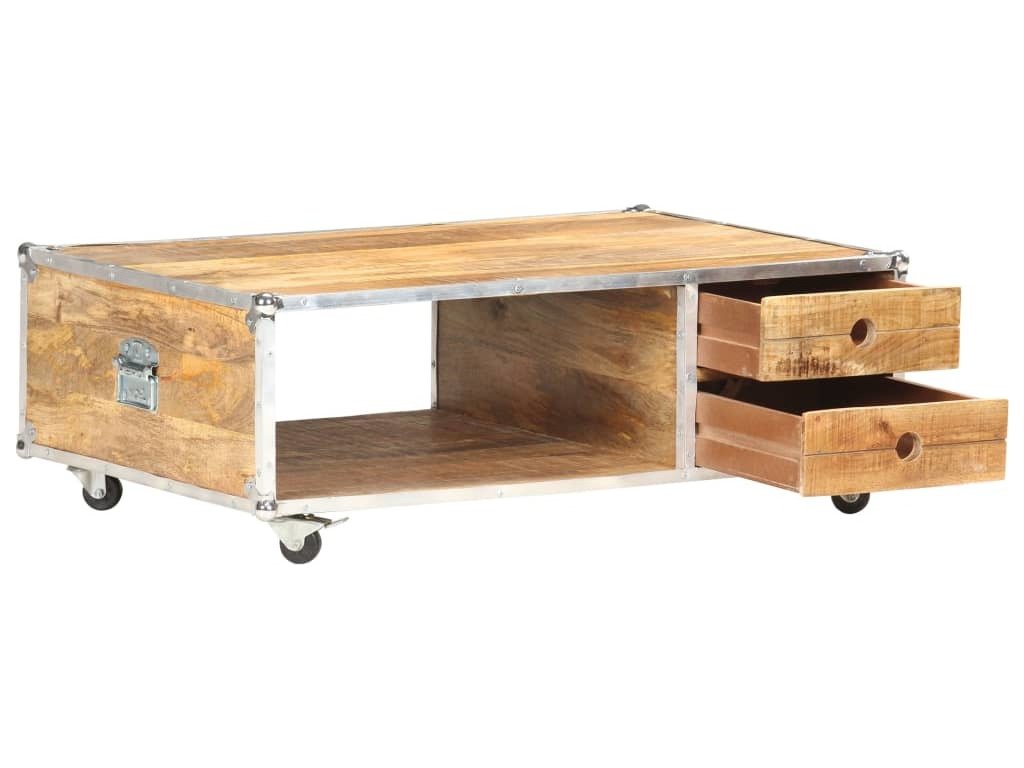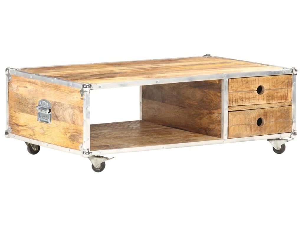 Dřevěný konferenční stolek je vyrobený z masivního hrubého mangovníkového dřeva, což je tvrdé dřevo s hustou kresbou. Hrubé mangovníkové dřevo má vysokou nosnost a výborně odolává zubu času. Takže tento krásně navržený koncový stolek s kovovými hranami je stabilní, má dlouhou životnost a krásně vypadá. Tento stolek k pohovce se 2 zásuvkami a 1 otevřenou přihrádkou také poskytuje dostatek místa pro uložení vašich multimediálních zařízení, knih a různých dalších věcí.