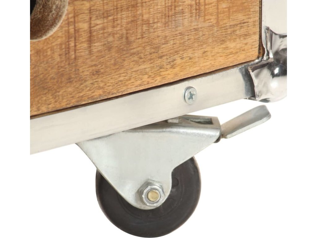 - Materiál: masivní hrubé mangovníkové dřevo s přírodní povrchovou úpravou, kov