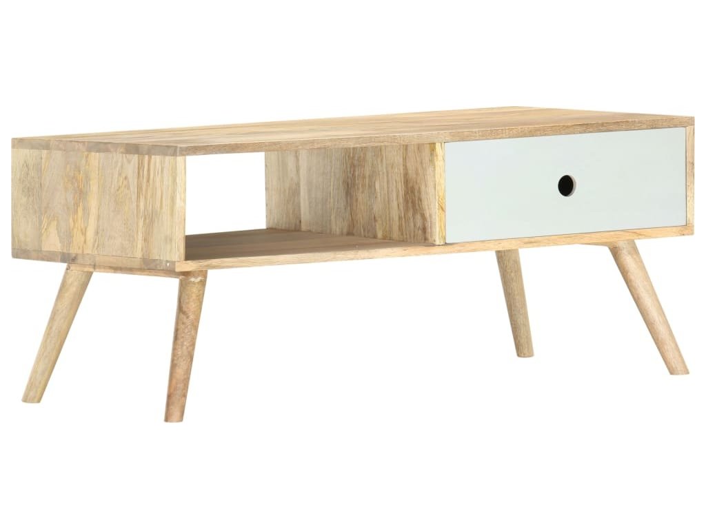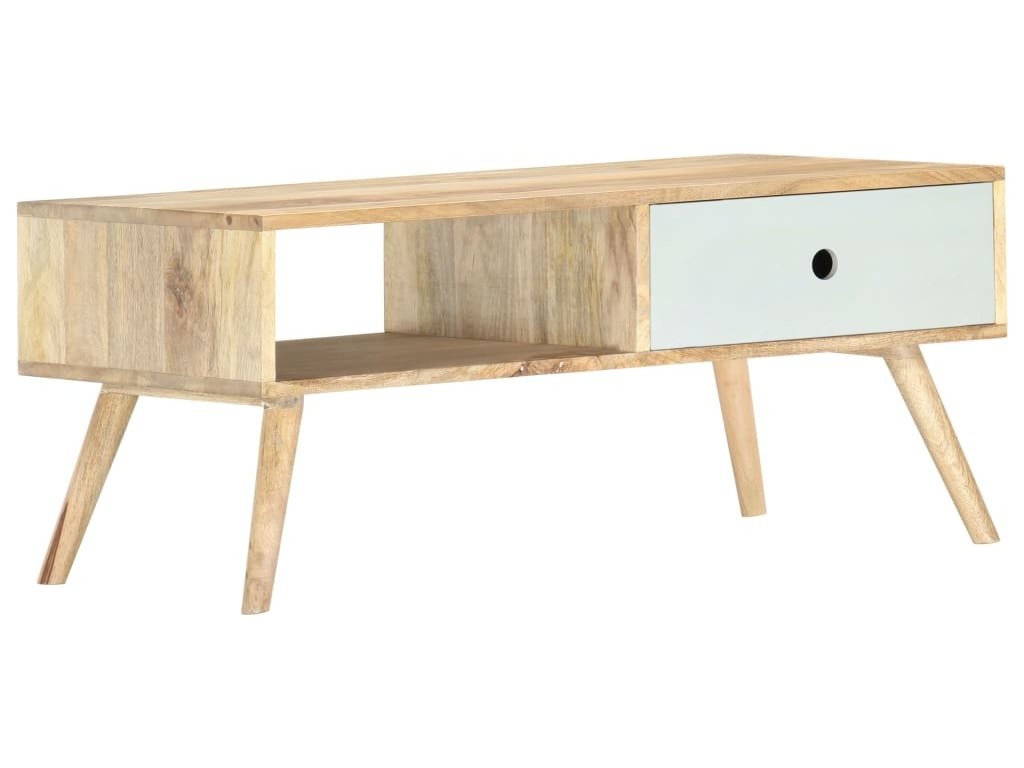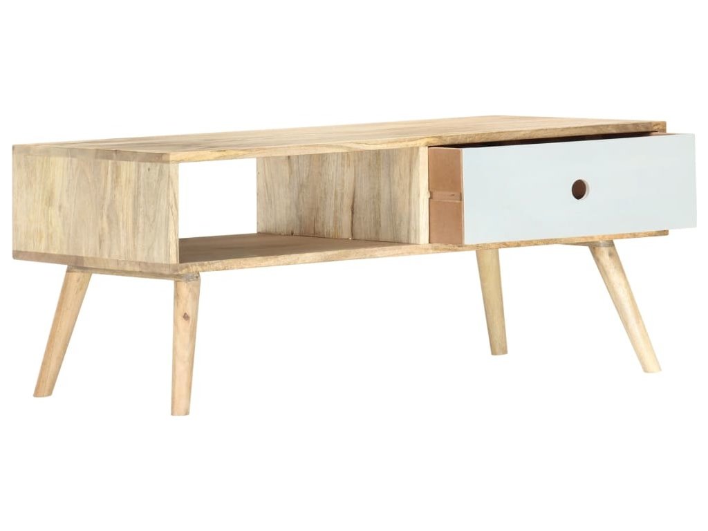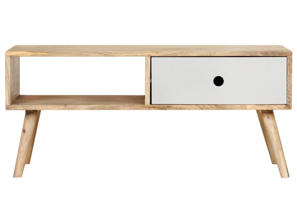 Konferenční stolek je ručně vyrobený z masivního mangovníkového dřeva, které je nejen pevné a stabilní, ale zároveň také krásně vypadá. Zručné řemeslné zpracování přispívá k jeho okázalému retro stylu. Každá fáze výrobního procesu je prováděná s největší pečlivostí, ať už se jedná o leštění anebo lakování. Rukodělná výroba a překrásná kresba dřeva dávají každému kusu nábytku jedinečný charakter, jímž se lehce liší od všech ostatních. Ve stolku je 1 zásuvka a 1 polička, kde najdete spoustu úložného prostoru k přehlednému odkládání všech důležitých věcí, které si přejete mít po ruce. Montáž našeho konferenčního stolku je snadná.