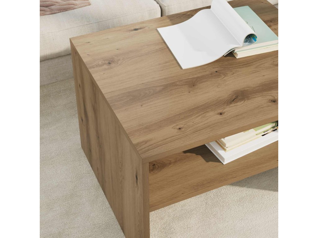 Tento moderní konferenční stolek se vyznačuje elegantním obdélníkovým designem, který přidá šmrnc každému obýváku. Vyrobený z kompozitního dřeva, spojuje trvanlivost s estetikou, takže je to must-have kousek pro vaše centrum společenského života. Jeho povrch je ideální na dekorace, pití nebo čtení, a zvyšuje tak jak funkčnost, tak styl.