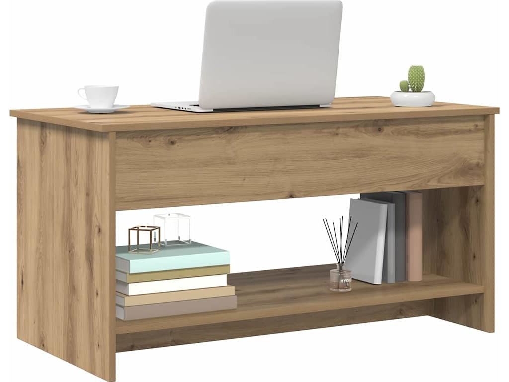 - Materiál z inženýrského dřeva: Tenhle stolek je vyrobený z inženýrského dřeva, což je super trvanlivé a šik. Zajišťuje, že bude dlouho vypadat skvěle a je to i ekologická volba se stabilními a hladkými povrchy, které dodají prostoru šmrnc.