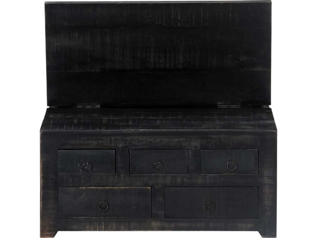 Tento praktický konferenční stolek je jako dělaný pro ukládání multimediálních zařízení, knížek, časopisů či různých drobností, které chcete mít neustále po ruce. Má pevnou konstrukci a je vyrobený z mangovníkového dřeva, takže je mimořádně odolný. Mangovník je husté a robustní dřevo s přirozenou kresbou s překrásnými pruhy a konturami. Každá fáze výrobního procesu je prováděna s maximální péčí, ať už se jedná o leštění, natírání anebo lakování. Stolek disponuje 5 zásuvkami a otevírací stolní deskou, pod kterou se skrývá velký úložný prostor, kam si můžete uschovat nejrůznější maličkosti a uspořádat si tam multimediální zařízení, herní konzole a časopisy.