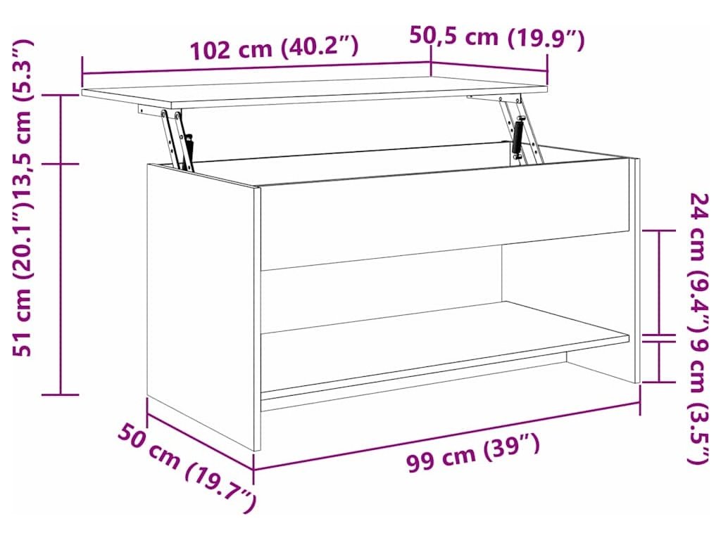- Materiál z inženýrského dřeva: Tenhle stolek je vyrobený z inženýrského dřeva, což je super trvanlivé a šik. Zajišťuje, že bude dlouho vypadat skvěle a je to i ekologická volba se stabilními a hladkými povrchy, které dodají prostoru šmrnc.