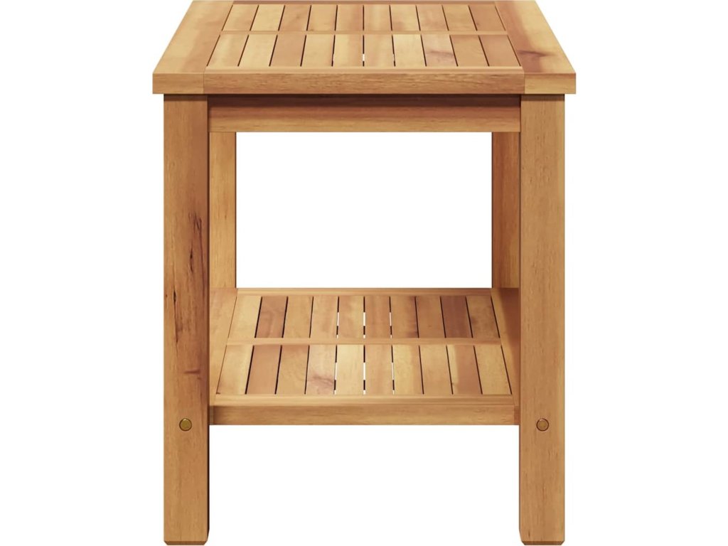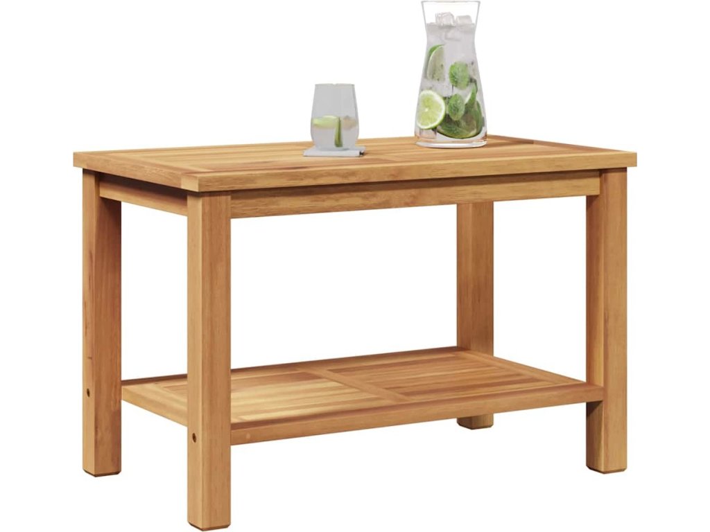 - Masivní teakové dřevo Tento konferenční stolek je vyroben z masivního teakového dřeva, známého svou robustností a bohatou texturou. Materiál zajišťuje, že stůl zůstane pevný a ukáže jemné vzory zrna, které přidávají přírodní dotek k vaší domácí dekoraci. Teak je přirozeně odolný vůči povětrnostním vlivům, takže je vhodný i na venkovní prostory.