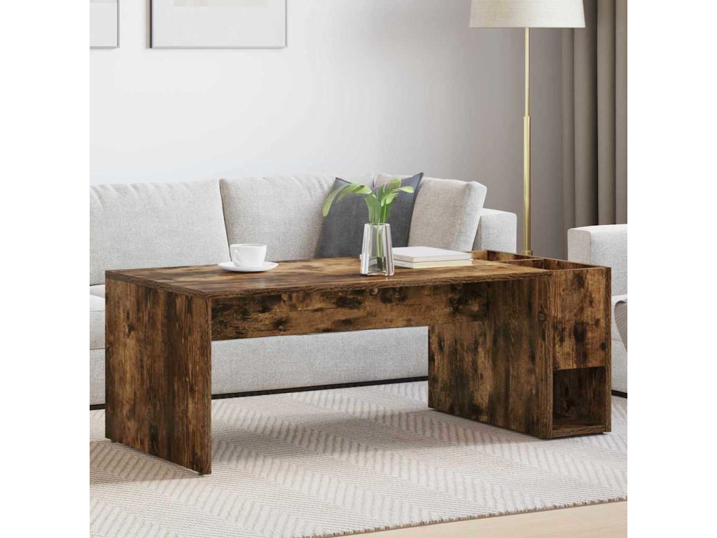 - Prostorný úložný design Design stolku s velkým úložným prostorem umožňuje snadnou organizaci vašich nezbytností v obýváku. Využijte přihrádky k uložení časopisů, ovladačů nebo drobností. Mějte vše na dosah a užívejte si organizovaný prostor.