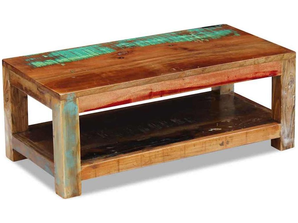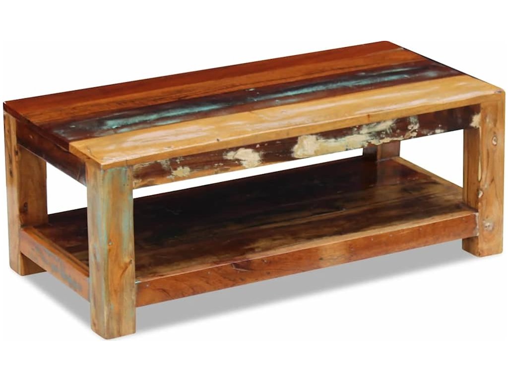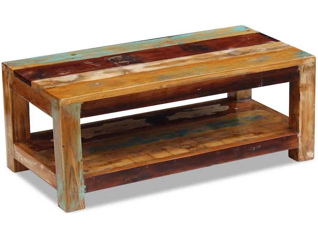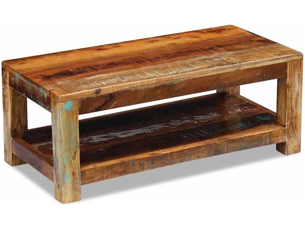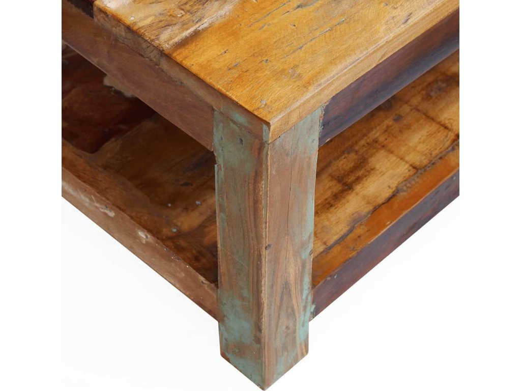 Tento z recyklovaného dřeva vyrobený konferenční stolek v retro stylu. Bude to originální kus do vašeho obýváku! Konstrukce z masivního dřeva je stabilní, takže si na ni můžete bezpečně odložit nápoje, mísy s ovocem nebo dekorativní předměty. Můžete jej také používat jako stolek ke gauči, odkládací stolek, koncový stolek konzolový stolek apod.