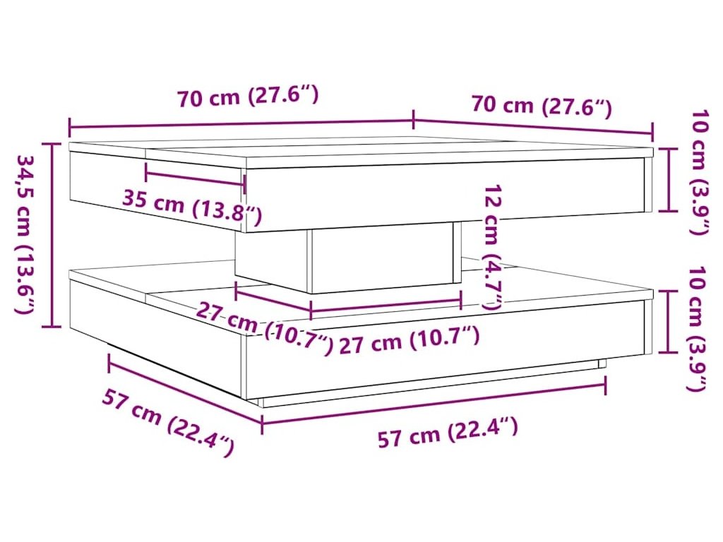 - Celkové rozměry: 70 x 70 x 34,5 cm (Š x H x V)
