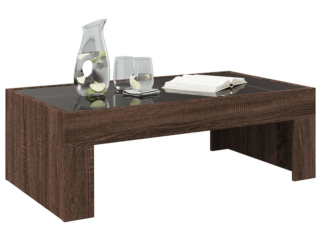 - RGB LED světla pro příjemnou atmosféru: Tento stolek je vybaven LED osvětlením, které lze snadno nastavit a vytvořit tak individuální světelnou atmosféru. Umožňuje přizpůsobit režimy, barvy a jas, abyste si vytvořili příjemnou atmosféru svého interiéru.