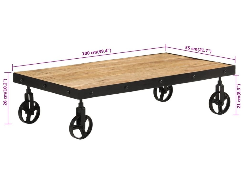 Konferenční stolek s kolečky masivní mangovník 100 x 55 x 26 cm [371683]