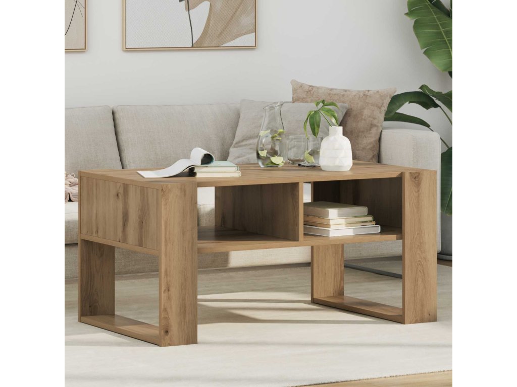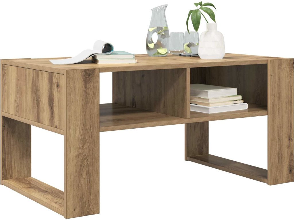 - Konstrukce z inženýrské dřevotřísky – Tento konferenční stolek je vyroben z kvalitní inženýrské dřevotřísky, která je známá svou pevností a odolností. Ideální pro každodenní použití, ať už drží časopisy, nebo dekorace, přesto stále zachovává svůj styl a lehkost.