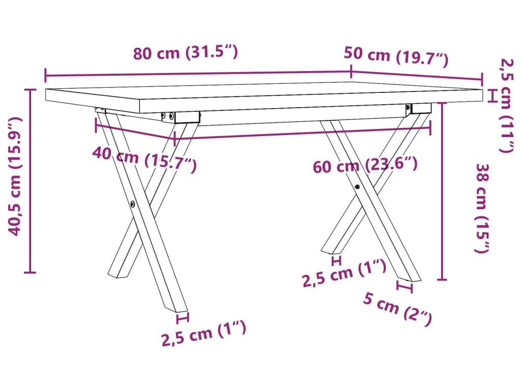 Konferenční stolek s X rámem 80x50x40,5cm borové dřevo a ocel [3282750]