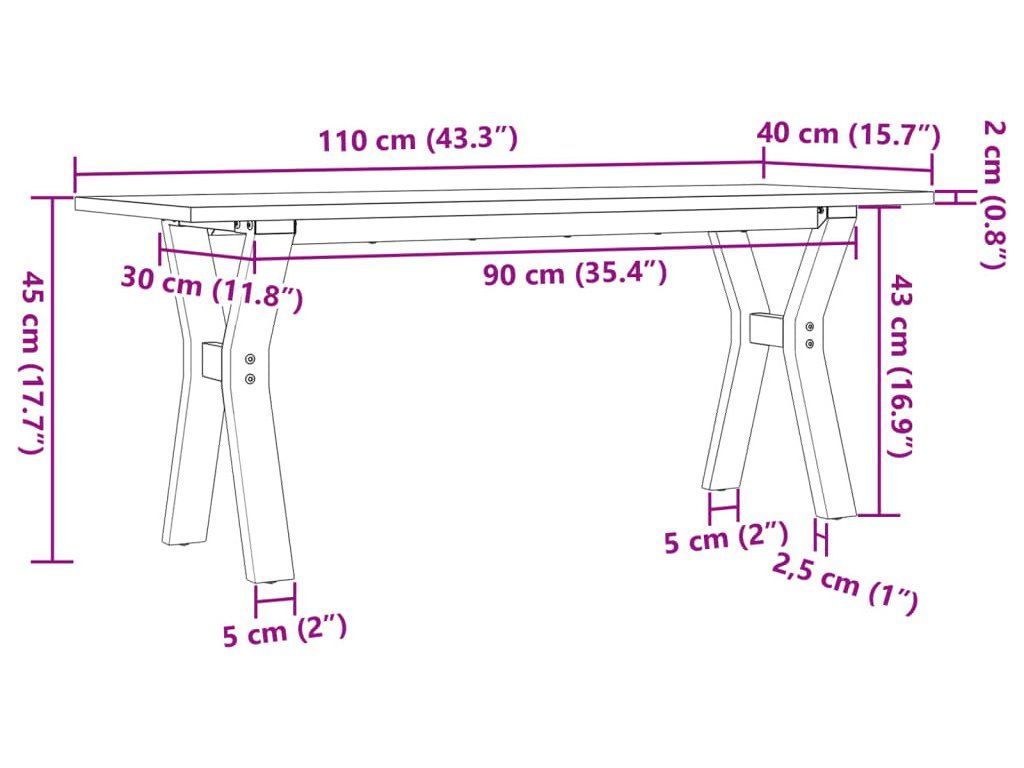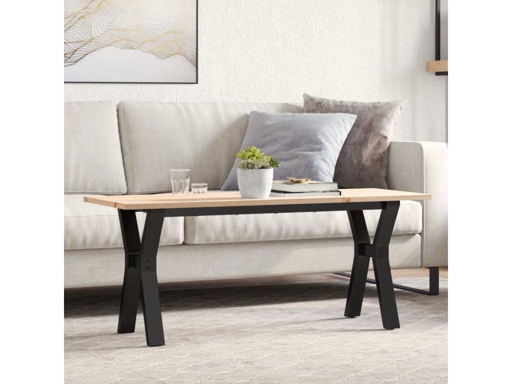 Konferenční stolek s Y rámem 110x40x45 cm borové dřevo a ocel [3282711]