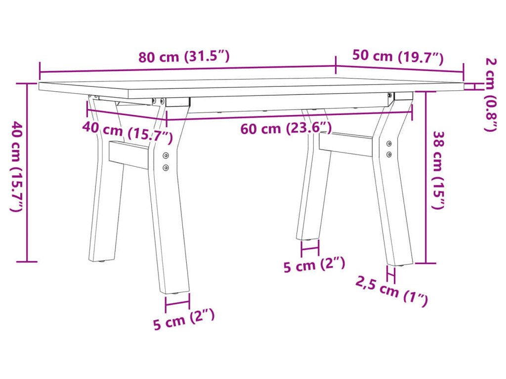 Konferenční stolek s Y rámem 80x50x40 cm borové dřevo a ocel [3282706]