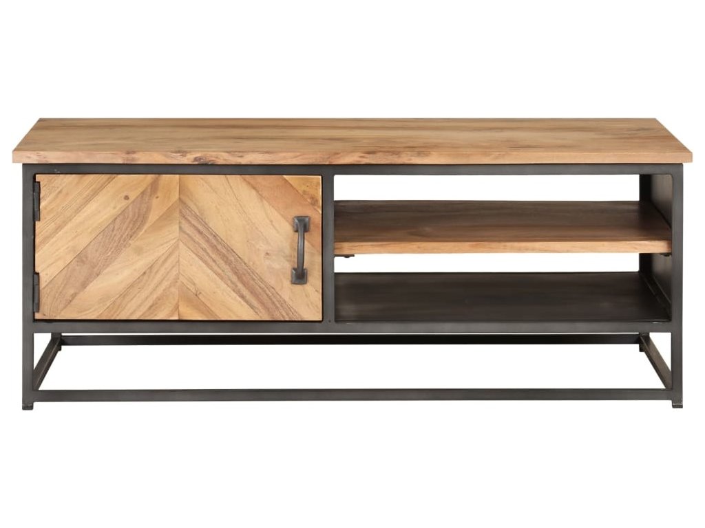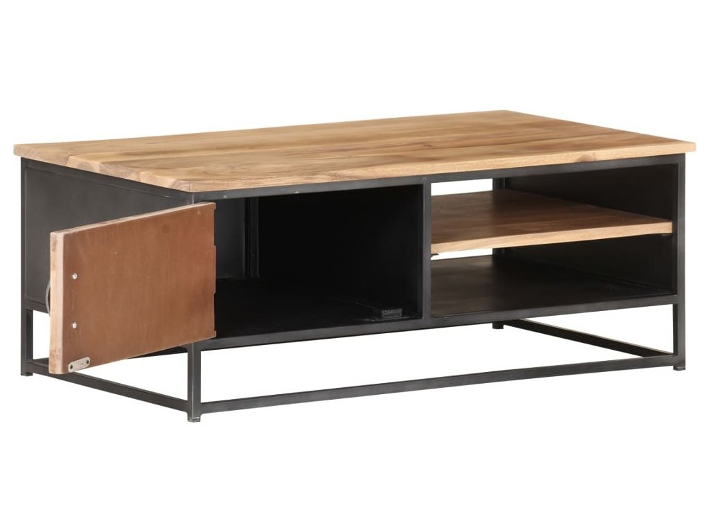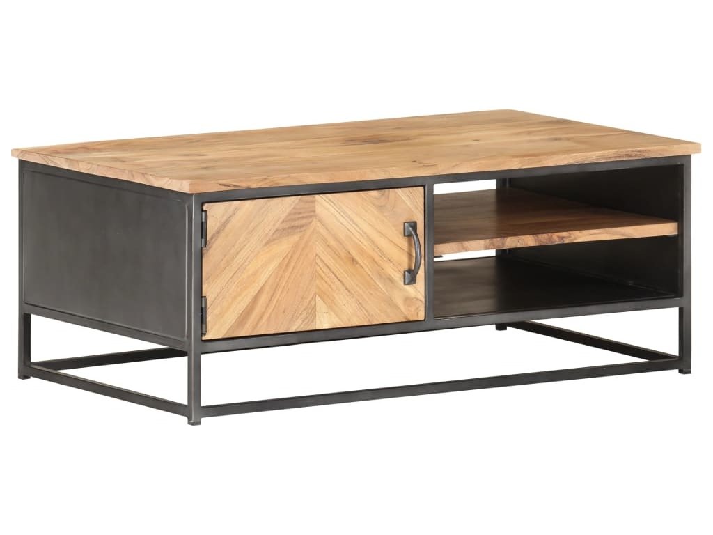 Tento stolek k pohovce je vyrobený z masivního akácie, tvrdého dřeva s hustou strukturou. Krásně navržený stolek je stabilní, odolný a velmi atraktivní. Zásluhou vynikajícího řemeslného zpracování a osobité kresby dřeva je každý kus jedinečný a jemně se liší od ostatních. Nohy z oceli s práškovým nástřikem jsou zárukou bytelné konstrukce stolku. Stolek má 2 otevřené přihrádky a jednu přihrádku s dvířky, kam si můžete ukládat časopisy, knihy atd. Bytelná stolní deska je ideální pro servírování nápojů, jídla a vystavování dekorací.