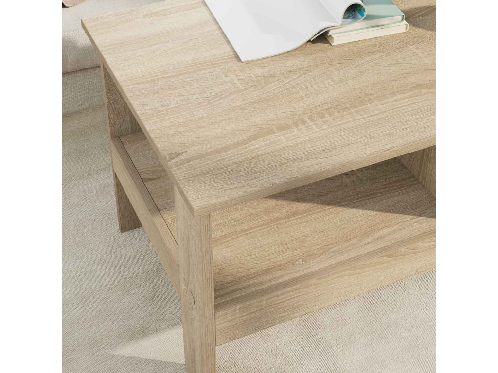 Tento moderní konferenční stolek super zvedne vzhled a funkčnost vašeho obýváku. Navržený s důrazem na elegantní, moderní design, je to skvělý kus nábytku pro společenskou atmosféru a pohodlné posezení. Speciální inženýrské dřevo zajišťuje pevnou stavbu a krásný vzhled dřevěného nábytku. Hladký a prostorný povrch vám umožní spojit praktičnost s estetikou, takže je ideální pro cokoli, od klidného čtení po setkání s přáteli.