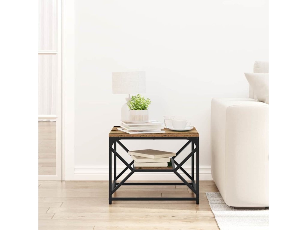 - Součásti: Stolek má elegantní ocelové nohy pro větší odolnost a pevný rám, takže je stabilní na jakémkoliv povrchu. Povrch z kompozitního dřeva je ideální pro vystavení tvých oblíbených časopisů, dekorací nebo nápojů.