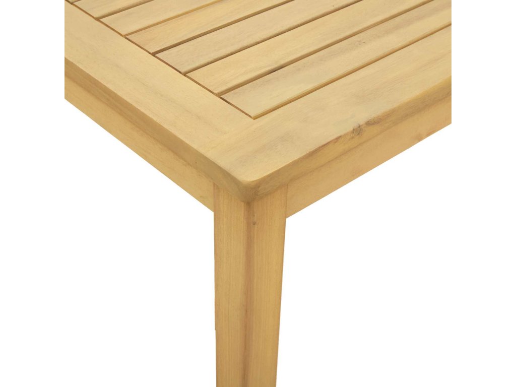 - Masivní akáciové dřevo: Tenhle konferenční stolek je vyroben z masivního akáciového dřeva, známého svým krásným vzhledem a přirozeně voděodolným povrchem. Přírodní vzory a hnědá barva mu dodávají jedinečný šmrnc. Vydrží různé počasí a stále vypadá skvěle.