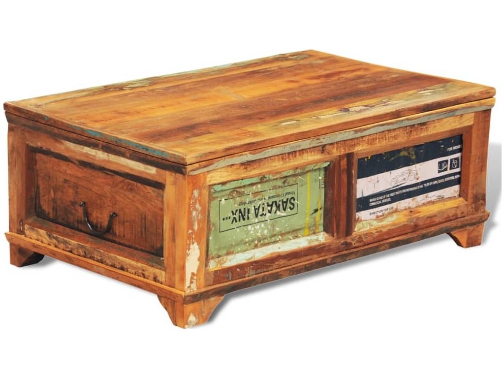 Konferenční stolek úložný prostor vintage recyklované dřevo [241092]