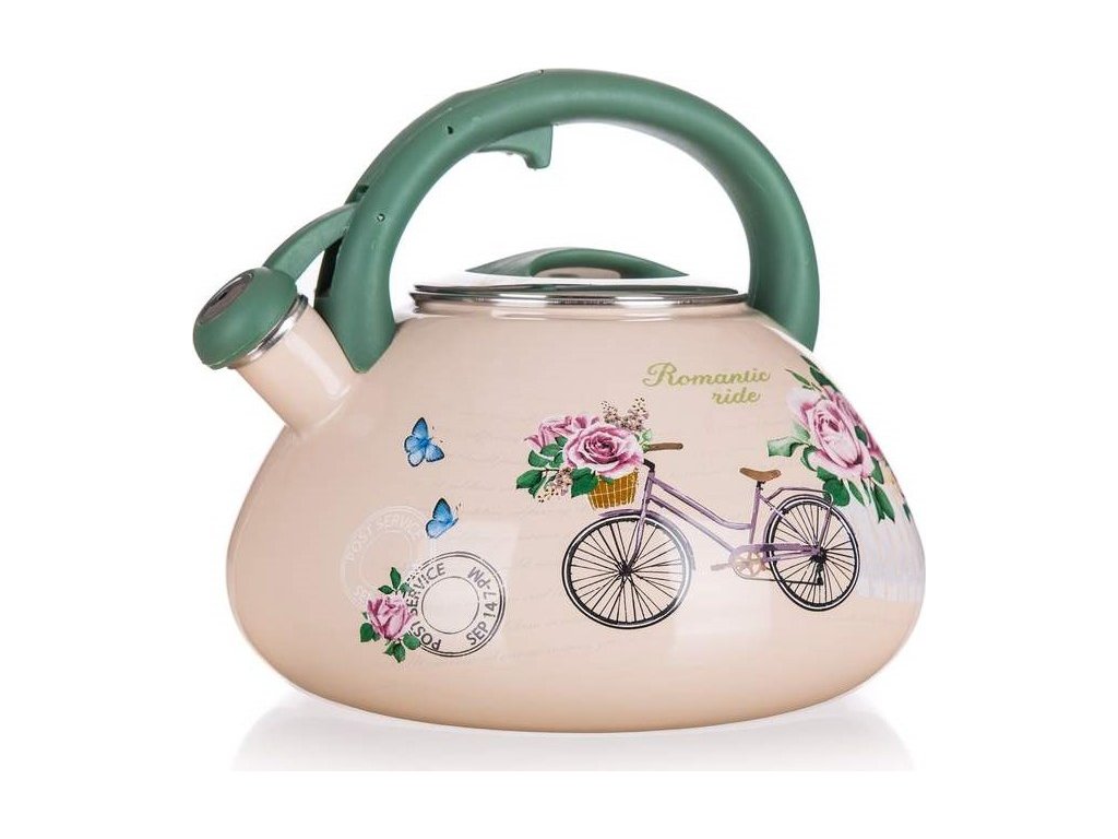 Konvice se vyrábí z ocelového plátu s 2vrstvým smaltovaným nástřikem. Její vzhled vás nadchne. Dekor vám připomene romantickou vyjížďku na kole. Barva plastové rukojeti je laděná do celkového designu konvice.
