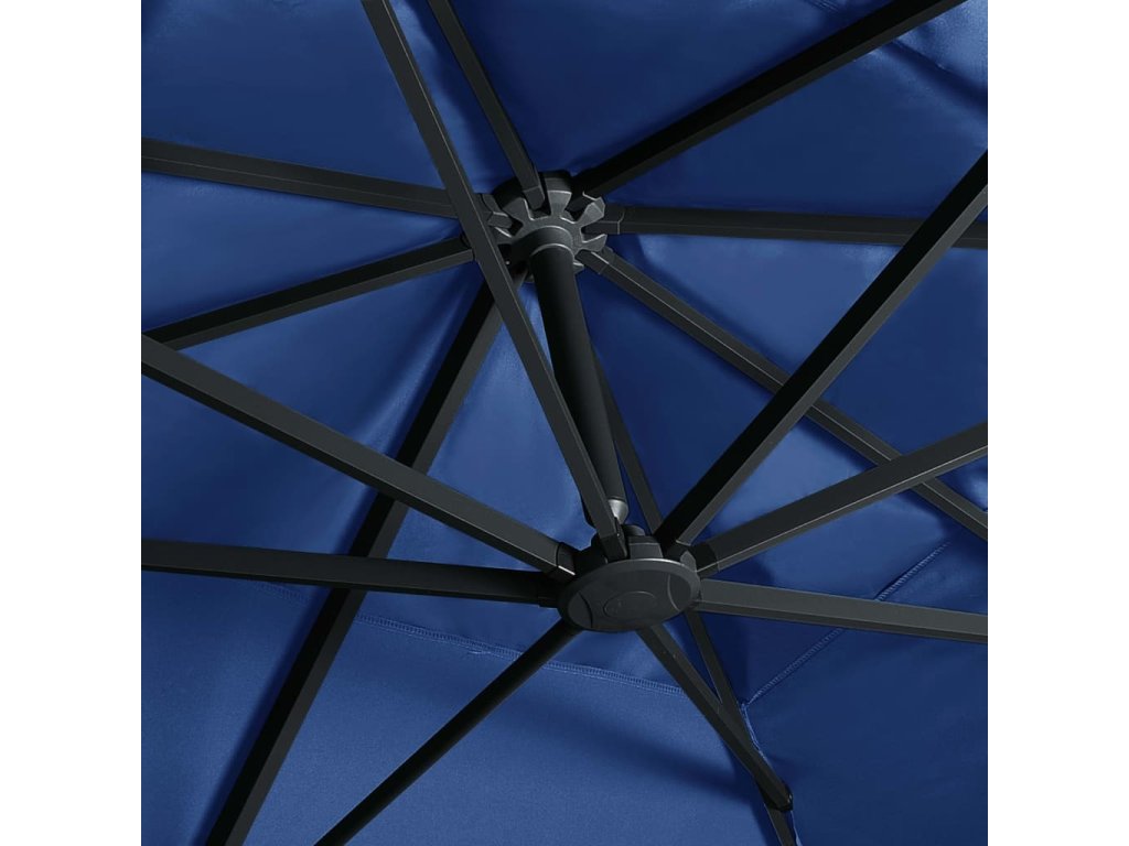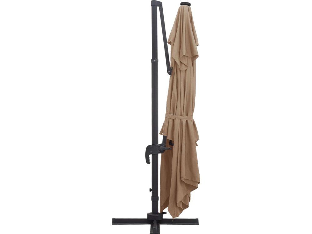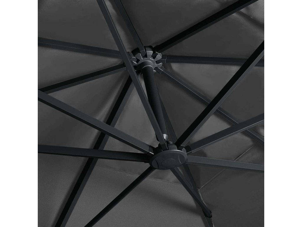 Stříška slunečníku je vyrobena z polyesterové tkaniny, která nepropouští škodlivé UV záření, neztrácí barvu a poskytne vám optimální ochranu před sluncem, a navíc se snadno čistí. Má 24 solárně poháněných LED světel, která při západu slunce automaticky osvětlí váš venkovní prostor a vytvoří útulnou atmosféru. Slunečník je vybaven pevnou křížovou základnou pro větší stabilitu. Pro otevření a zavření našeho zahradního slunečníku stačí otočit páčkou na tyči. Zatlačením nahoru nebo dolů si pak můžete nastavit úhel stříšky. Středovou tyč lze pomocí pedálu otáčet o 360 stupňů. Silná hliníková tyč s práškovým nástřikem s 8 odolnými žebry slunečníku zajišťuje stabilitu a dlouhou životnost. Sestavení produktu je snadné.