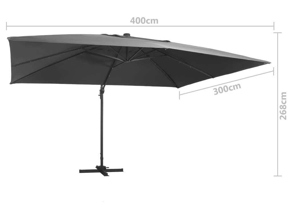 Konzolový slunečník s LED a hliníkovou tyčí 400 x 300 cm [47007]